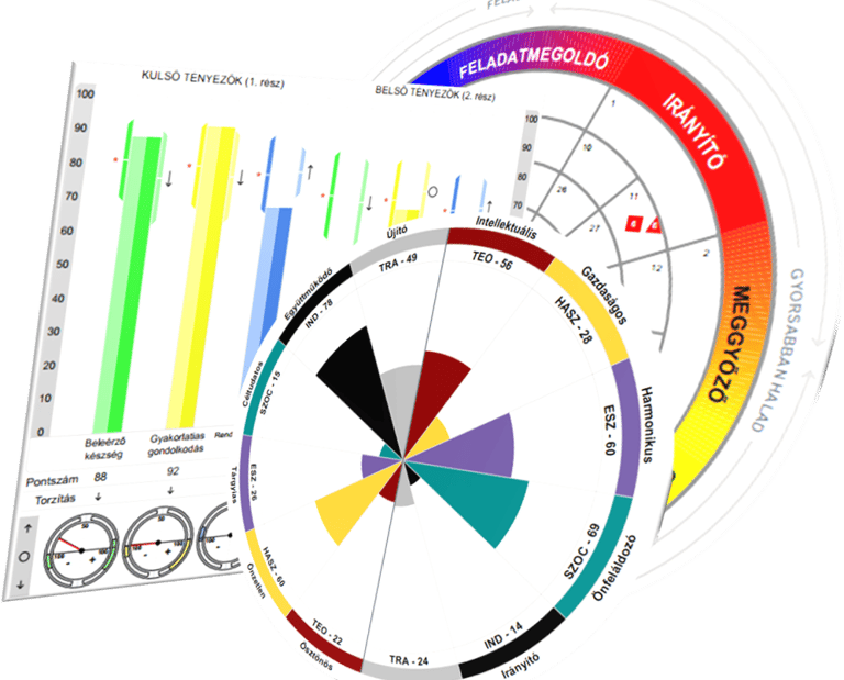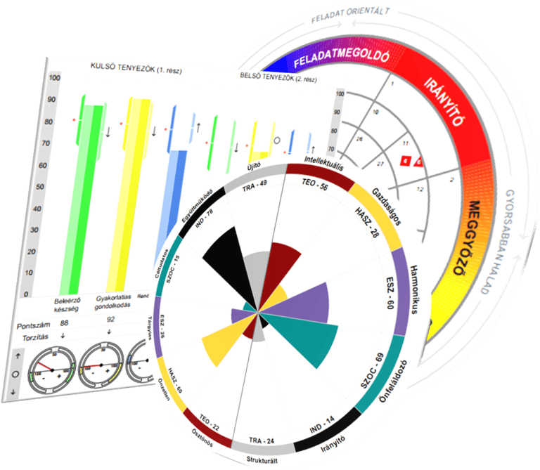Az elérhető elemzés típusok: DISC (viselkedésmód), Driving Forces (motiváció), DNA25 (kompetenciák), ACUMAN (érzelmi torzítások), EQ (érzelmi intelligencia)